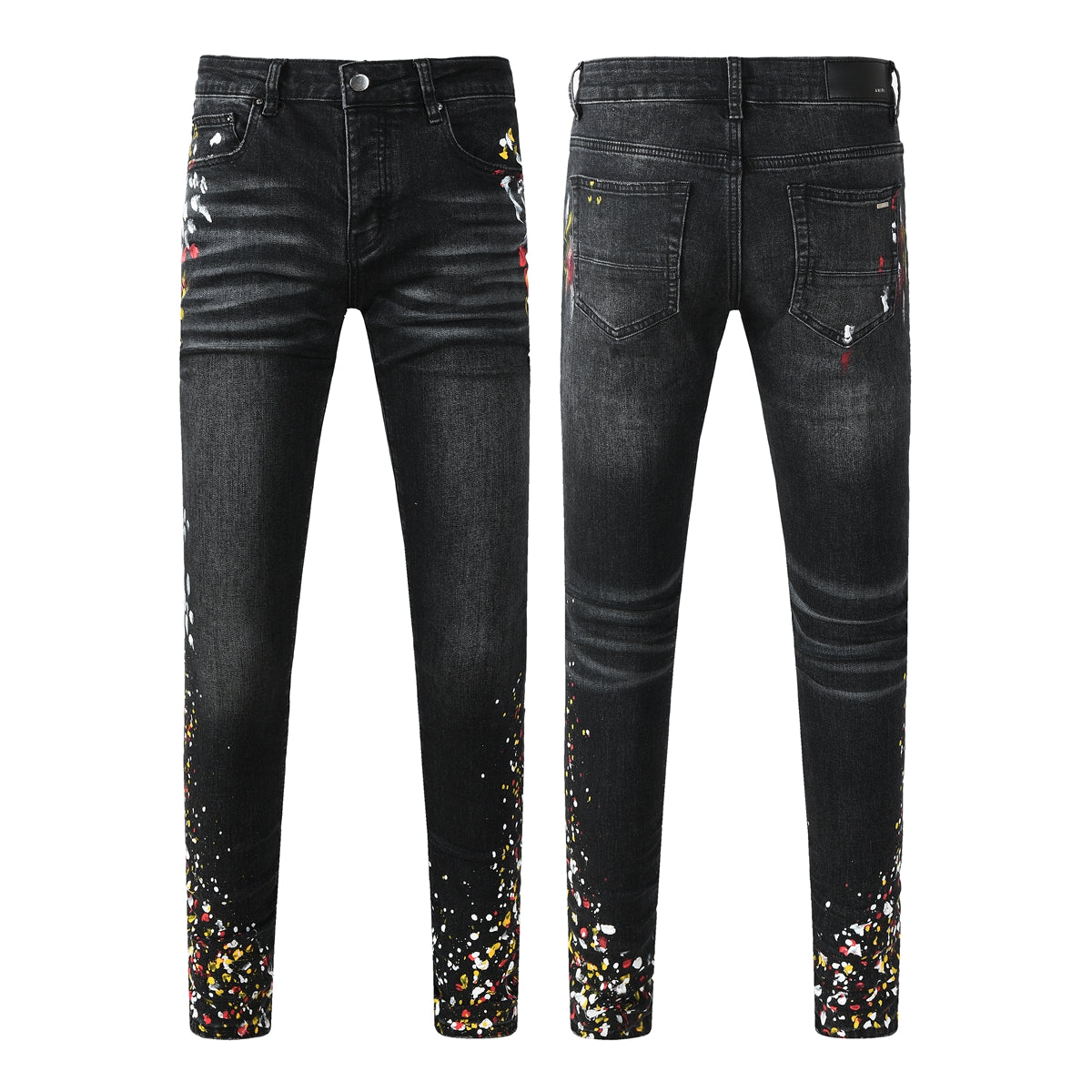 Pantalones Vaqueros Pitillo Negros de Hombre Estilo Urbano con Estampado Salpicado y Efecto Lavado 8913